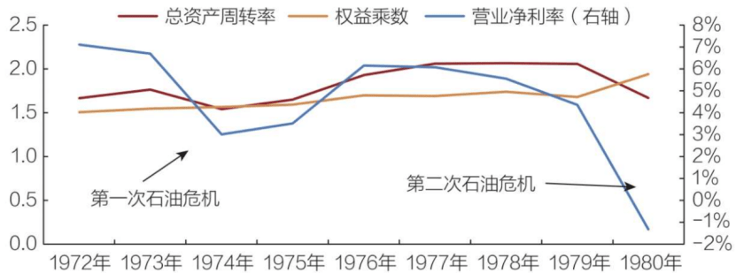 最终美国社会的高通胀和石油危机对通用造成了毁灭性的打击,两次石油危机后,通用汽车陷入了财务成本和净收益不可逆的下行区间。