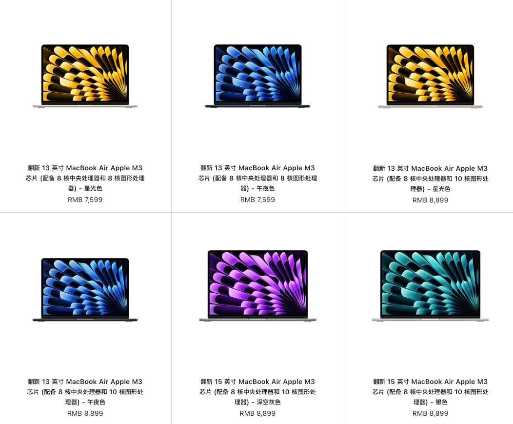 苹果中国官网近期上架了MacBook Air M3官翻版,定价7599元起,相比全新机8999元起便宜了1400元,目前13英寸和15英寸均有货,感兴趣可关注。