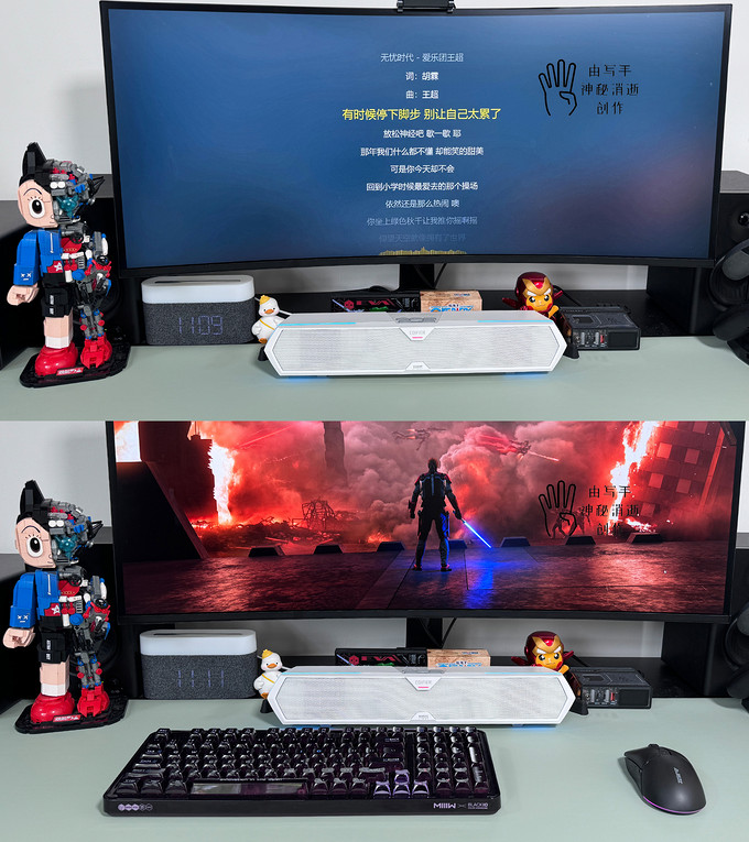 ▲这两款条形音箱说实话各有特色,一款声音质感解析精准,一款光影型颜兼修,很难取舍,最终决定还是全都留下,M30 Plus作为桌搭新欢,B2放在客厅全面提升电视的音质呈现。