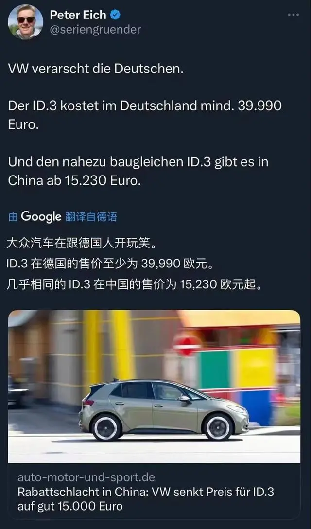 默默心疼一下德国人,他们想买一台 ID.3 ,还是得继续付出国内两倍多的价格。