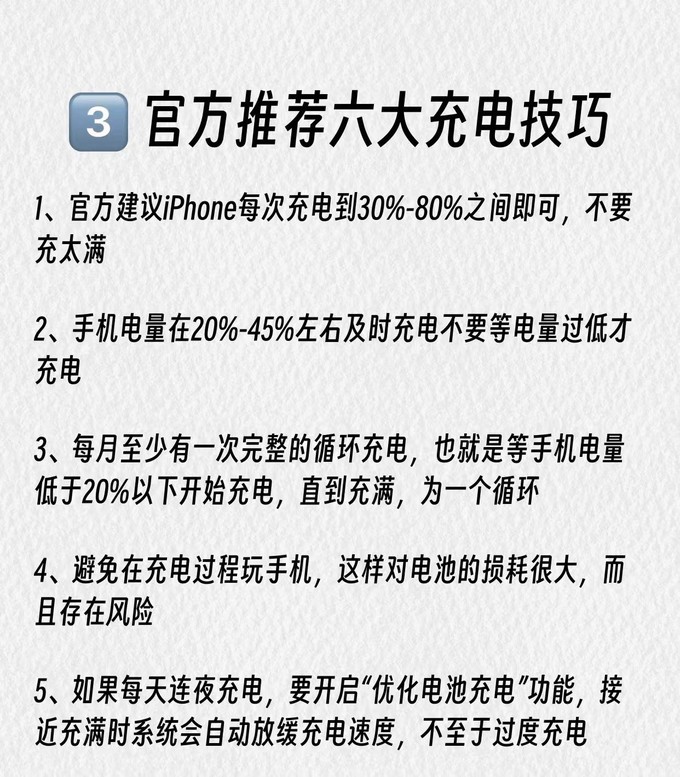 苹果官方呢当然也是知道自家iPhone电池的情况,所以就给了几个关于iPhone电池该如何保养的小技巧(请看图片)
