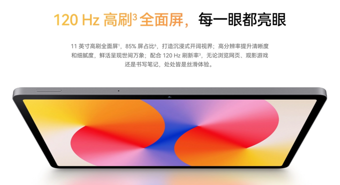 这款MatePad SE 11采用11英寸120Hz高刷全面屏,屏占比达到85%,分辨率为1920*1200,最高亮度400nits,作为低端产品这块屏幕的素质还算可以。