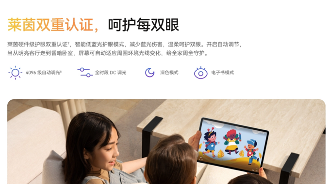 它还支持莱茵双重护眼认证,给孩子用来学习可以呵护眼睛。