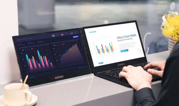 GPD 的双屏本还没有来,现在又一家国产品牌带来一款很独特的双屏本——阿迈奇Acemagic X1。