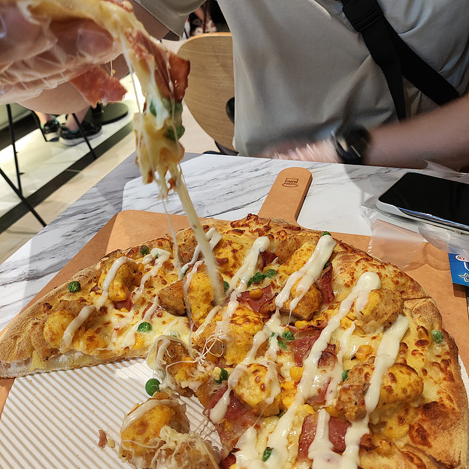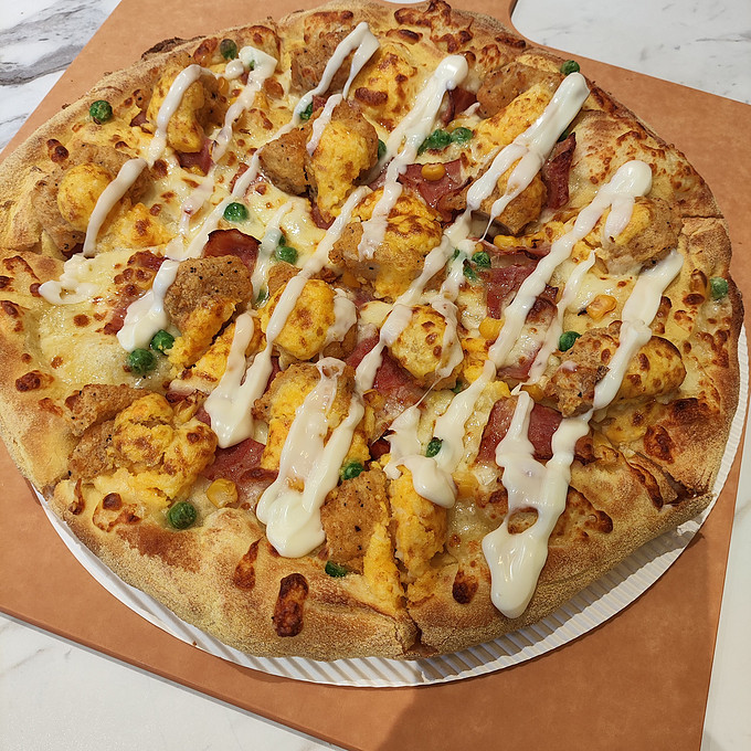 还没想好吃什么的,一起来试试这款披萨吧,真的很不错哦!推荐指数五颗星