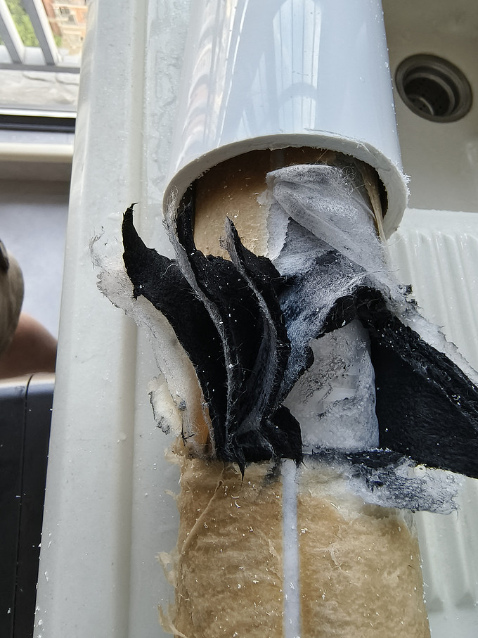本来想锯中间,可是看接头那边有凹槽,就想省点力气!锯了五六分钟,锯开了,结果里面啥也看不到。