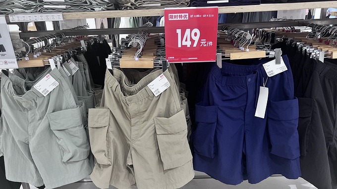 其实版型就是今年降落伞长裤,直接来了一刀剪成的短裤,所以有着异曲同工之妙,目前价格降到了149元,但很受欢迎,感觉有可能要比较晚到99元,先干为敬了,一口气买了3条!最喜欢烟灰色、海蓝色!