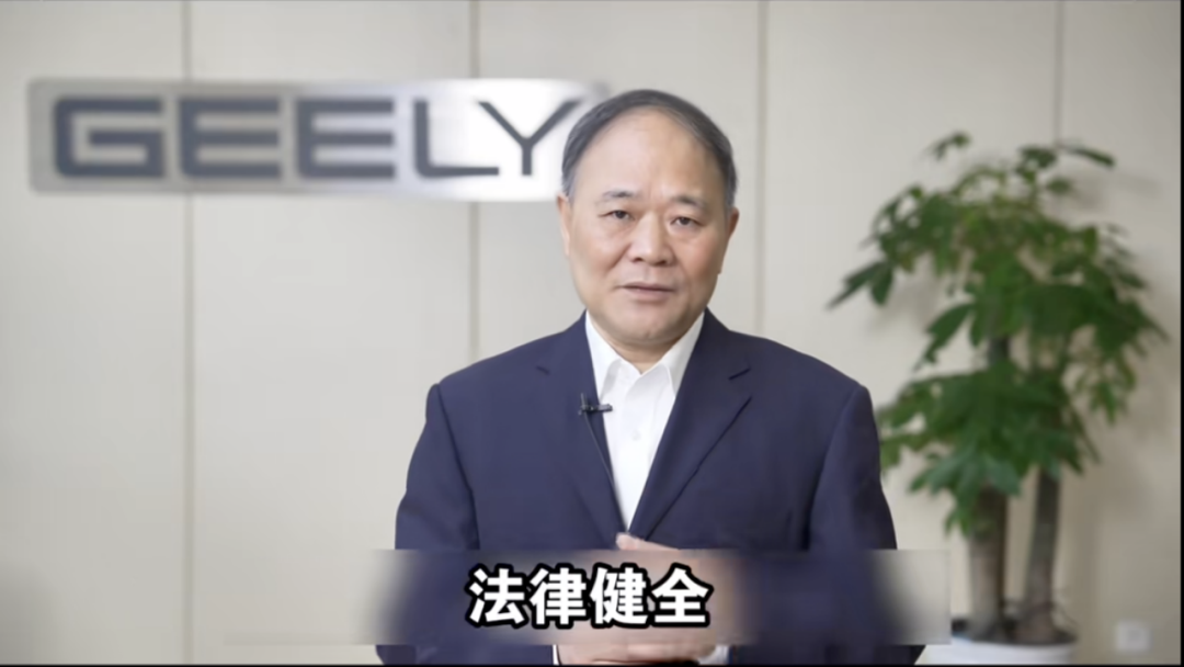 杨学良在2024中国汽车论坛上的演讲延续和扩展了李书福的讲话精神,整场演讲提及了10次“法律”、3次“法治”、2次“法规”、2次“依法”、1次“守法”、1次“非法”、3次“合规”,堪称一次普法大宣讲。