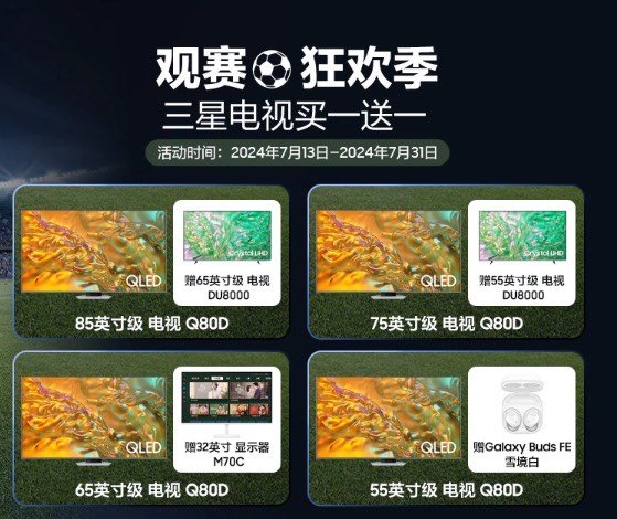 作为一台有“AI”的电视,最主要的就是能解放大家的双手,节省大家的时间,所以以上所有的功能我们都可以在设置里选择自动开启,开启后一切交给电视来自行处理,而我们只负责身临其境。在“AI” 电视这条新赛道上,三星QLED电视Q80D 可以说为大家交上了一份满意的答卷,有需要的朋友们,可以去三星商城购买,三星商城正在进行观赛狂欢季礼遇活动,购买指定电视买一送一哦!(买一送一活动赠品非同型号电视)!