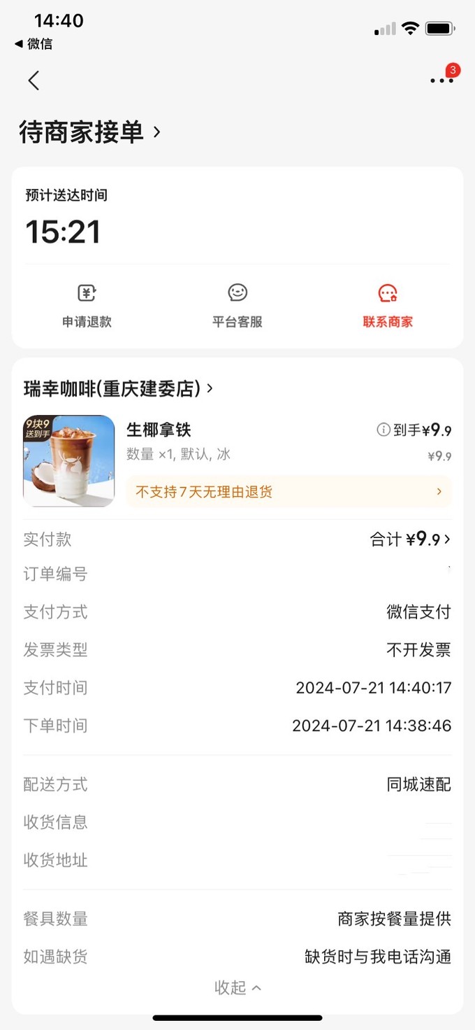 这不是我第一次买瑞幸的生椰拿铁,而且我家离最近的瑞幸咖啡店也就几百米,按直线距离来算,就是楼上和楼下关系,要是有一座电梯🛗,估计也就五六分钟的事,根本不需要最少的9分钟!这就是魅力山城的特色!