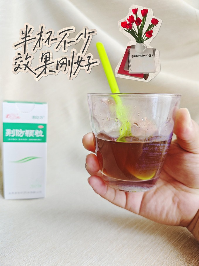 当然这些都是表象,具体药效如何呢?启达力荆防颗粒选用的药材性温和,配伍得当。独立包装更方便卫生,撕开包装后有股浓郁的中药味溢出,倒进杯中,细细观察,荆防颗粒整体呈黄褐色,颗粒体积小,冲入温水不用过多搅拌就很快消融在水中了,浅褐色的药液散发出一丝丝的甜味,入口的甜度因人而异,个人感觉略甜,但甜味来源不是添加糖,而是甘草等药材的效用体现。整体口感温润不苦涩辛辣,连小朋友也能轻松拿捏。