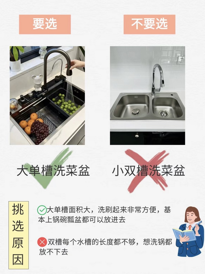 1⃣️买水槽>20cm,不买<18cm大于20cm比较能放东西,还能防止水花飞溅