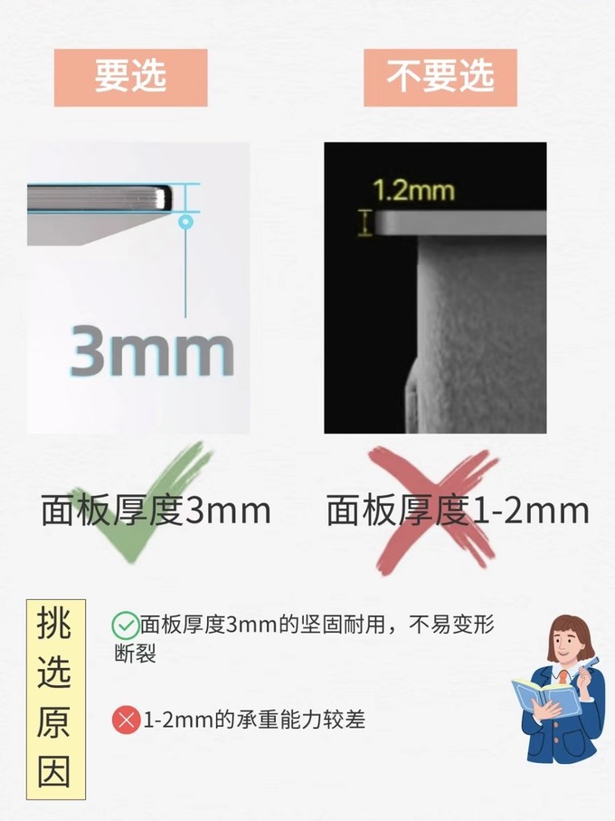 7⃣️买面板厚3mm,不买1-2mm面板厚 3mm的,坚固耐用,不易变形断裂