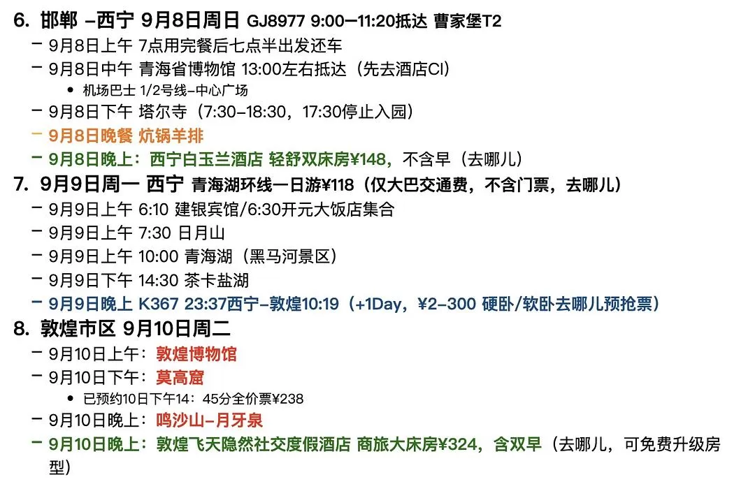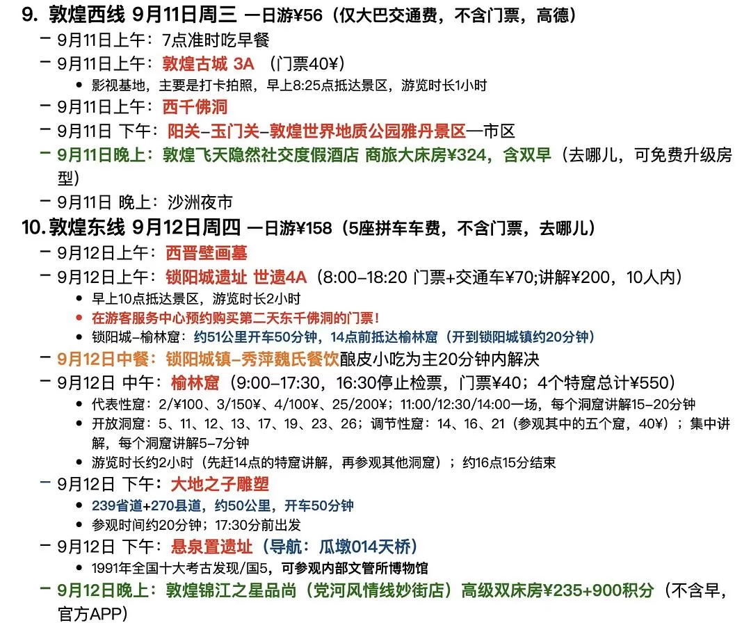 吃喝玩乐旅游推荐9月8日-14日河西走廊 🌟敦煌之旅 访古之旅5整体的访古深度游景点第一到三天行程第四、第五天行程第六天行程第七第八天行程 已经定好酒店,规㊙️划好行程做好攻略了,能开车搭把手体力好,最好是小姐姐~ 由于我16号要参加一个越野赛,所以行程到14号就结束了~ 往后继续走的话,就是嘉峪关可以再玩半天,城关or博物馆–张掖–武威–西宁 or兰州–天水麦积山 一路访...赞 (0)投稿用户2025-01-30阅读(244)标签:值得去