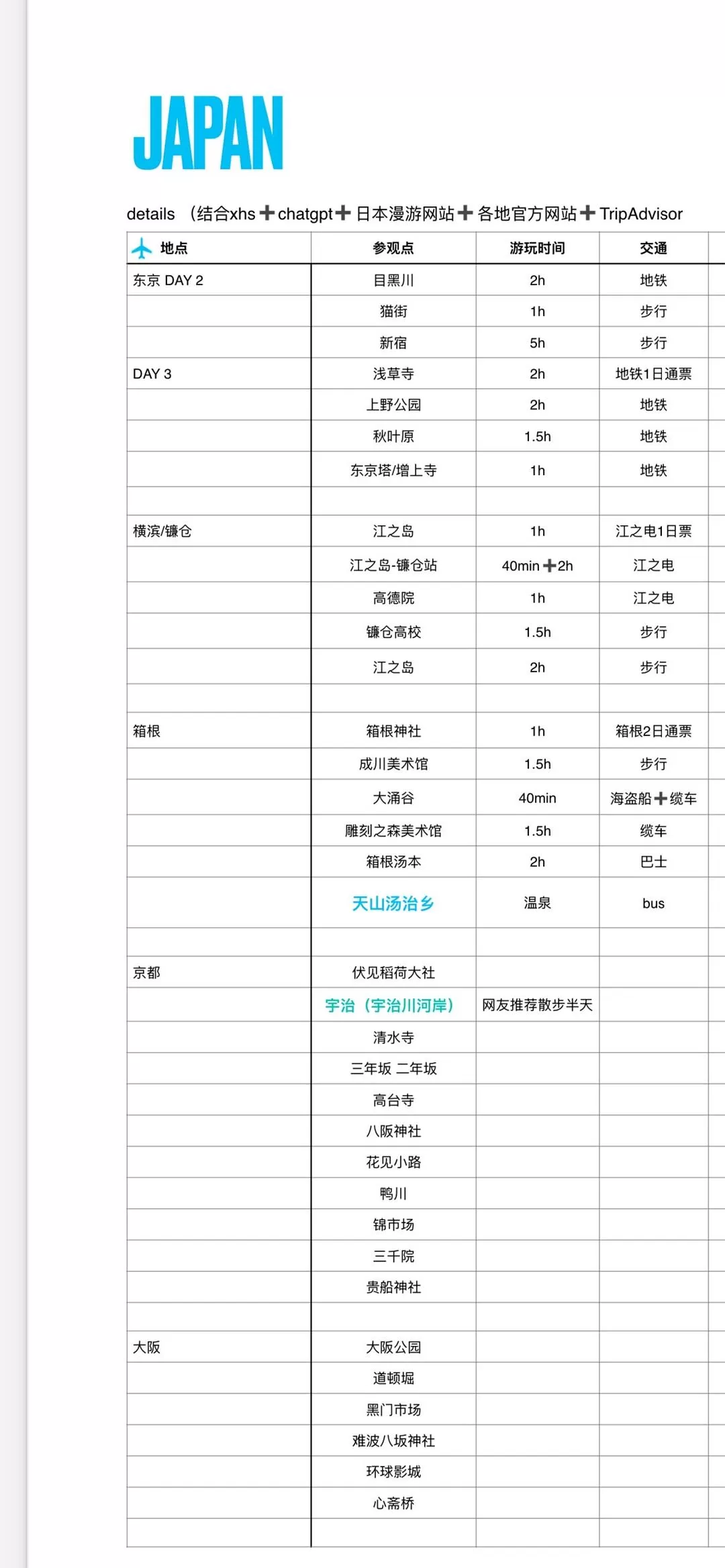 吃喝玩乐旅游推荐💝一人游:日本12日11晚(多图)52目🥈录: 1️⃣路线和时间安排 2️⃣各个地方主要旅游点 3️⃣旅游点的照片记录 4️⃣花销(不含购物) 正文: 1️⃣路线和时间安排: 东京:3天3晚(3月4日下午3点半,落地东京) 镰仓:1天1晚 箱根:2天2晚 京都:2天2晚 宇治:半天(离开京都去大阪先去宇治,再去的大阪) 大阪:3天3晚(3月15日晚上7点,离开大阪) 2️⃣各个地方主要旅游点: ...赞 (0)投稿用户2025-03-20阅读(482)标签:旅游
