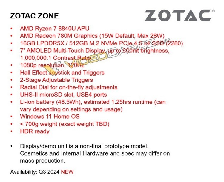 科技数码电脑展丨索泰 ZONE 首款掌机详细配置出炉,搭 AMD 处理器、1080p 高刷屏、48.5Wh电池3索泰即将发布的 ZONE 游戏掌机具体配置现身,还真是采用 AMD 锐龙平台。 如图,基于AMD 最新 Ryzen 7 8840U APU 处理器,集成 780M 核显,媲美GTX 1650Ti,配备16GB LPDDR5X 内存和 512GB PCIe 4.0 SSD,M.2 2280 尺寸好评。 屏幕配置也公开了,基于7英寸AMOLED屏。,800尼特亮...赞 (0)投稿用户2024-06-01阅读(420)标签:笔记本电脑