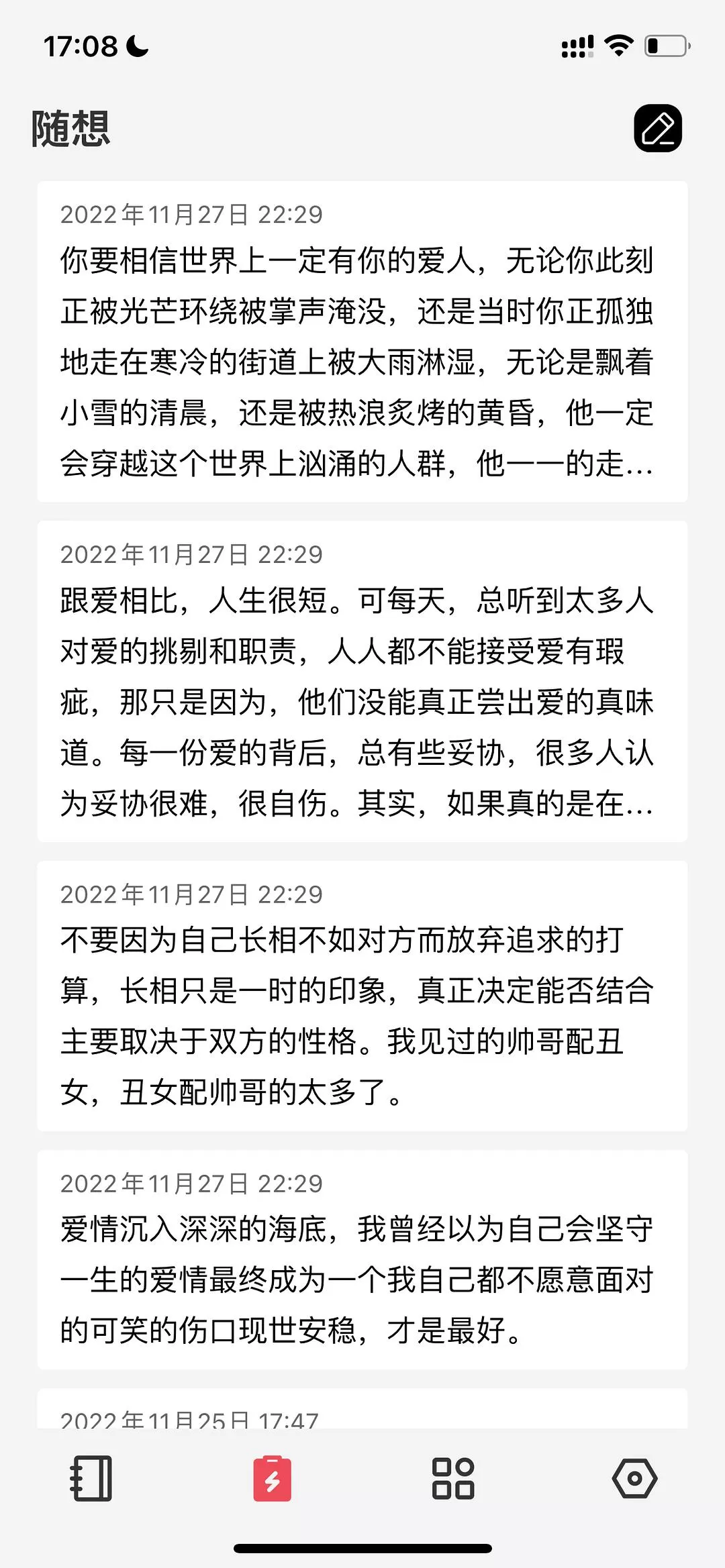 源码程序APP推荐🥇:【开发者自荐】清奇日记,一款简约清爽无广告的日记APP8❤️ 大家好,给大家推荐一款我开发的一款日记 APP:清奇日记,界面清爽无广告,简约而不简单,希望大家支持,期待提一些建议。 先说我为什么开发这一款日记 APP,最主要是我个人有着写日记的习惯,写了好几本了,后来为了写日记方便,开始寻找日记 APP,也用一些 APP 写了一段时间,换了不少日记 APP,总是没找到自己喜欢的那款,各种日记 APP 功能总是堆了...赞 (0)投稿用户2025-02-01阅读(269)标签:APP推荐